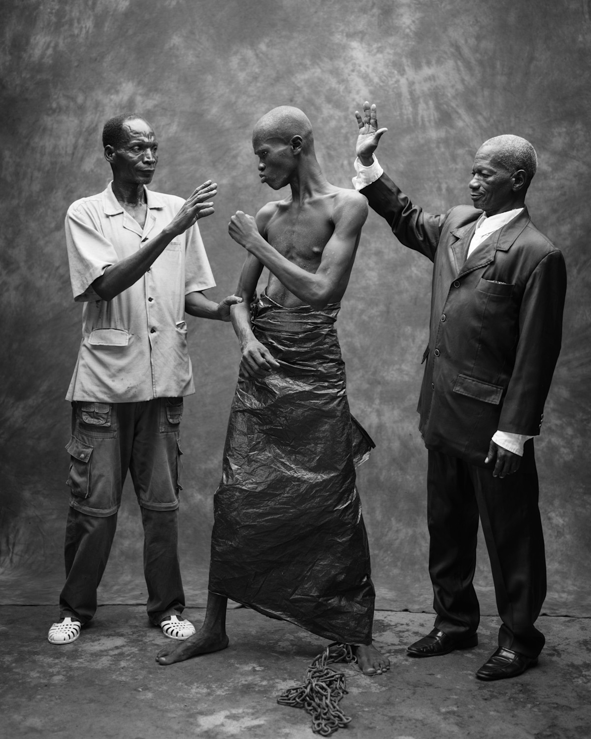 In institutions around the world, people living with mental health problems are restrained. Where resources are thin, such as in northern Togo, chains are often used to prevent them from hurting themselves, others, or running away. On this day approximately 15 adults living with mental health problems were chained to trees or posts, while they waited to be cured through prayer. Some had been constrained for more than a year.